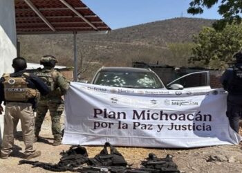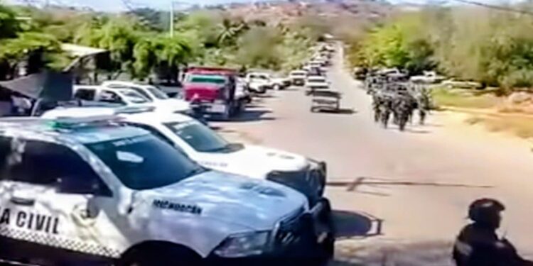TEPALCATEPEC, Mich., 7 de marzo de 2026.- Un fuerte operativo de seguridad interinstitucional por tierra y aire es el que se aplica en estos momentos en los límites de Michoacán y Jalisco, lo que ocurre después de que se registraran enfrentamientos a balazos desde la madrugada hasta la mañana de este sábado 7, en la colonia Los Olivos de la zona conurbada de la cabecera municipal de Tepalcatepec.