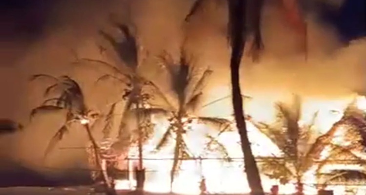 COAHUAYANA, Mich., 1 de enero de 2026.- Este jueves uno de enero, en los primeros minutos del primer día del año 2026, en el centro turístico de Boca de Apiza se incendió la rama denominada Río Restaurante presuntamente como consecuencia de un globo de Cantoya que cayó sobre la palapa del cuerpo principal del negocio.