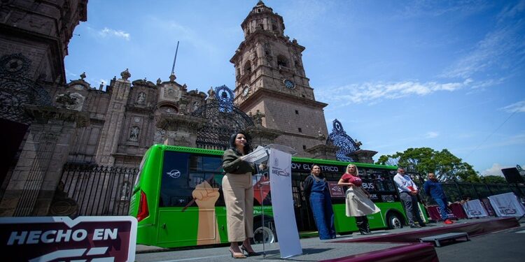 MORELIA, Mich., 15 de julio de 2025.- La secretaria de Desarrollo Urbano y Movilidad (Sedum), Gladyz Butanda Macías, presentó el Taruk, el primer autobús 100 por ciento eléctrico diseñado y fabricado en México, e informó sobre el inicio de las pruebas de desempeño en condiciones reales de operación, mismas que se realizarán del 16 al 31 de julio en Morelia.