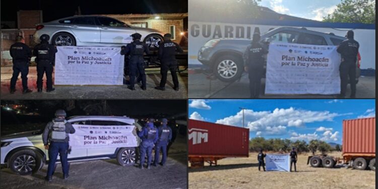 MORELIA, Mich., 11 de diciembre de 2025.- Resultado de los trabajos operativos del Plan Michoacán por la Paz y la Justicia, los elementos de las secretarías de Seguridad Pública (SSP), de la Defensa Nacional (Defensa), y de Seguridad Pública y Protección Ciudadana (Seguridad), junto con la Fiscalía General del Estado (FGE), y Policías Municipales, recuperaron 42 vehículos y aseguraron 17 personas implicadas en los hechos ilícitos.