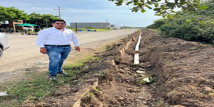 COAHUAYANA, Mich., 01 de septiembre de 2025.- El presidente municipal Andrés Rafael Aguilar Mendoza, Pay, supervisó los avances en la instalación del nuevo sistema de riego en la Avenida Constitución, proyecto que busca mejorar la conservación de las áreas verdes y embellecer uno de los principales accesos del municipio.