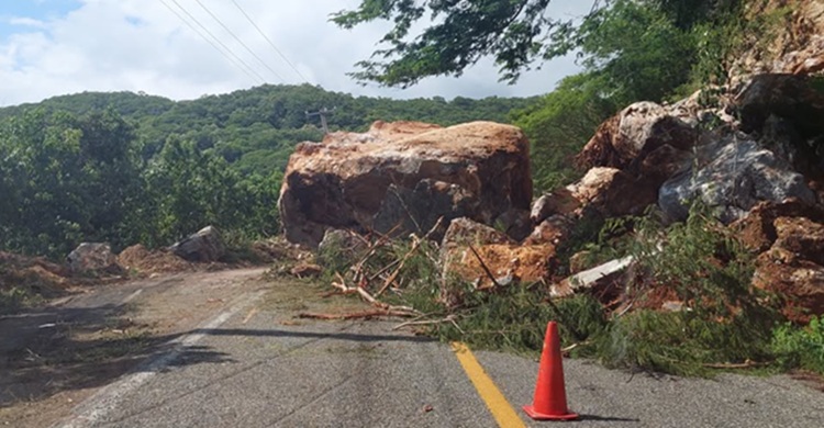 En la información recibida, se alerta de que en el mismo sitio del derrumbe en lo alto del cerro hay otra gran roca que representa un gran riesgo de caerse también, por lo que urgen a la Secretaría de Infraestructura, Comunicaciones y Transportes, a intervenir el sitio.