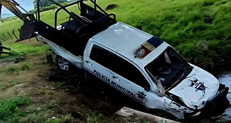 Cae patrulla a dren y causa lesiones a 5 policías de Tepalcatepec