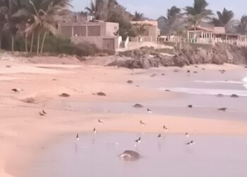 AQUILA, Mich., 20 de agosto de 2025.- Este miércoles, desde la playa de Ixtapilla los indígenas nahuas voluntarios del campamento...