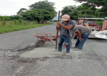 COAHUAYANA, Mich., 4 de octubre de 2025.- El Ayuntamiento de Coahuayana realiza trabajos de bacheo en el tramo carretero a...