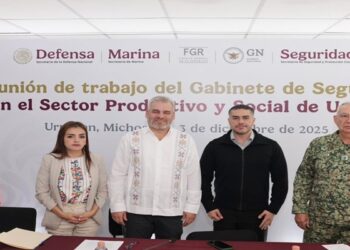 URUAPAN, Mich., 3 de diciembre de 2025.- El gobernador Alfredo Ramírez Bedolla; el secretario de Seguridad y Protección Ciudadana del...