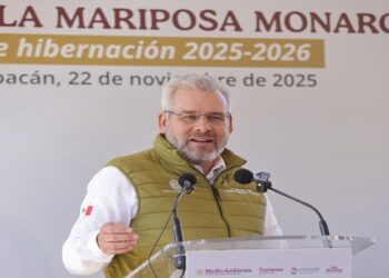 ANGANGUEO, Mich., 22 de noviembre de 2025.- Desde el Santuario de Sierra Chincua en el municipio de Angangueo, el gobernador...
