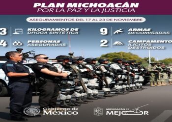 MORELIA, Mich., 24 de noviembre de 2025.- Durante la última semana, elementos de la Secretaría de Seguridad Pública (SSP), en...