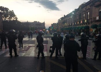 MORELIA, Mich., 2 de noviembre de 2025.- El Palacio de Gobierno se encuentra resguardado por elementos de seguridad estatal, luego...