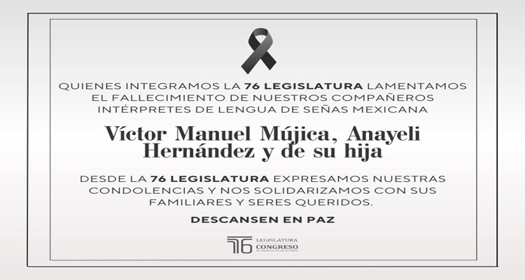 Desde el Congreso del Estado reiteramos nuestra solidaridad con sus familiares y amigos en estos momentos tan difíciles.