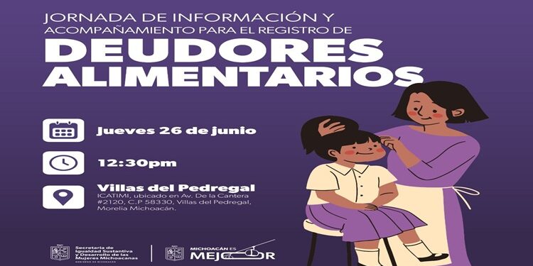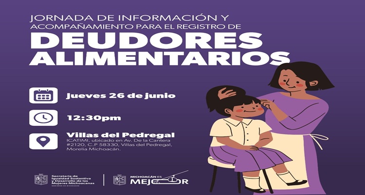 MORELIA, Mich., 24 de junio de 2025.- La Secretaría de Igualdad Sustantiva y Desarrollo de las Mujeres Michoacanas (Seimujer), encabezada por Alejandra Anguiano González, realizará una jornada de información y acompañamiento para el registro de deudores alimentarios en Villas del Pedregal, como parte de la estrategia integral del gobierno de Michoacán para garantizar justicia alimentaria en el estado.