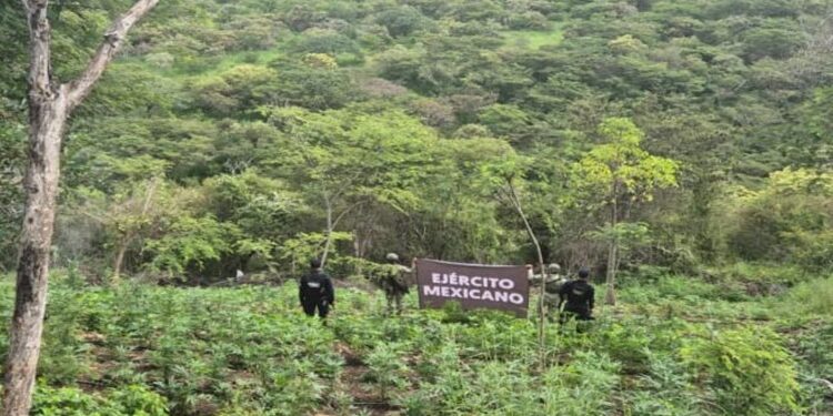 Los agentes de la Guardia Civil y el Ejército Mexicano, en estrecha coordinación con las Policías municipales de Huetamo, Carácuaro, Nocupétaro y Turicato, detectaron el sembradío de marihuana a la altura de la localidad Los Ocotes, con una superficie aproximada de dos mil 250 metros cuadrados.