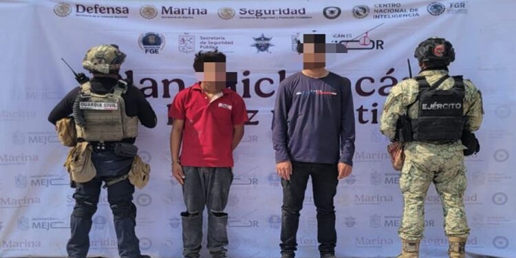 BUENASVISTA, Mich., 9 de enero del 2026.- En dos operativos distintos en el municipio de Buenavista, elementos de las secretarías de Seguridad Pública (SSP) y de la Defensa Nacional (Defensa) detuvieron a cinco hombres en posesión de equipo táctico, municiones, dosis de marihuana y dos vehículos.