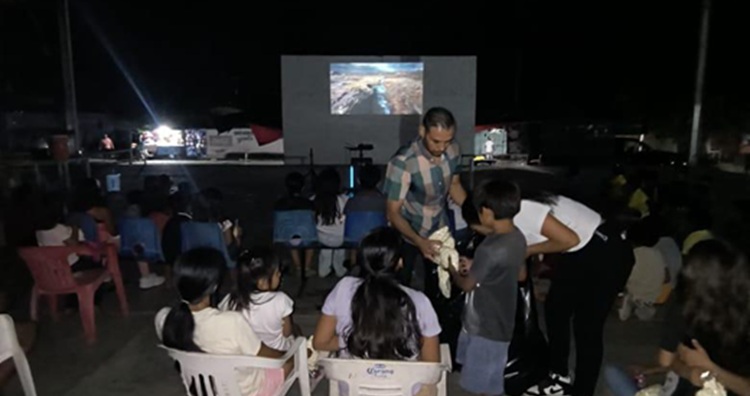 AQUILA, Mich., 31 de octubre de 2025.- Este jueves en el internacionalmente afamado centro turístico de Maruata de la Comunidad Indígena Pomaro, en la cancha techada se llevó a cabo una función del Cinito llevado por Guillermo Madrigal Fernández, el Lic. Memo, donde se presentó una película infantil la cual fue disfrutada por unos dos centenares de niños.