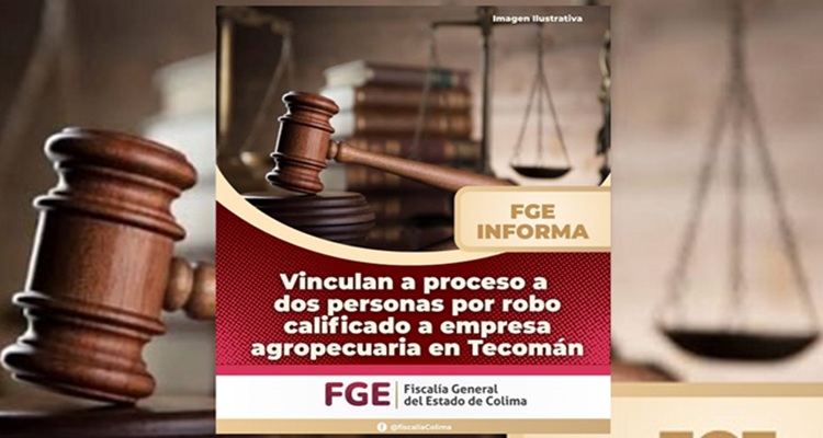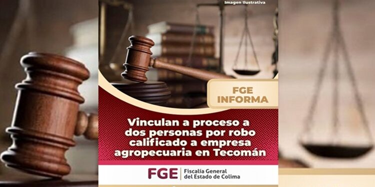 TECOMÁN, Col., 22 de abril de 2026.- Dos empleados de una empresa de Tecomán fueron vinculados a proceso penal por el robo de 12 millones 500 mil pesos que sustrajeron de la compañía agropecuaria.