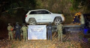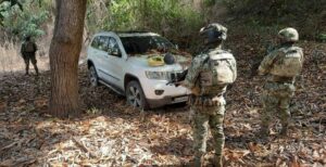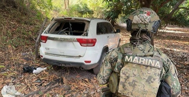 AQUILA, MIch., 15 de febrero de 2026.- Ese fin de semana la Secretaría de Marina Armada de México dio a conocer que en una brecha del municipio de Aquila, fue asegurado un vehículo sin reporte de robo, el cual presentaba impacto de arma de fuego, así como daños en el medallón y quemacocos, en tanto que en el interior de la cajuela fueron localizados un caso balístico y una bolsa de plástico conteniendo hierba seca con características similares a la marihuana, con un peso aproximado de 200 gramos.