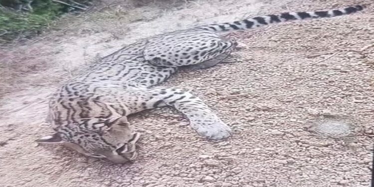 AQUILA, Mich., 18 de enero de 2026.- Este domingo trasciende que en la Costa de Aquila en la playa La Llorona, dónde termina la selva a pocos metros del mar, fue encontrado muerto un Ocelote adulto el cual presuntamente fue cazado por lugareños que lo hirieron en alguna montaña aledaña y moribundo llegó a rendir tributo a la madre tierra en este rincón de la naturaleza protegido por la Comunidad Indigena El Coire, la que reprobó el hecho.