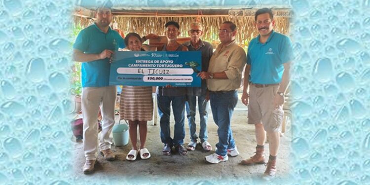COAHUAYANA, Mich., 20 de octubre de 2025.- El campamento tortugero de El Ticuiz representado por la protectora de tortugas marinas María del Rosario Martínez, recibió de la Comisión de Pesca de Michoacán (Compesca) la entrega de un apoyo económico para la adquisición de insumos, materiales y herramientas necesarias para el trabajo diario.
