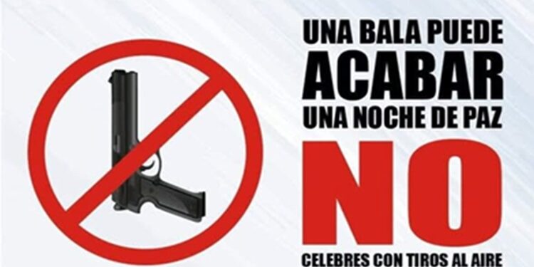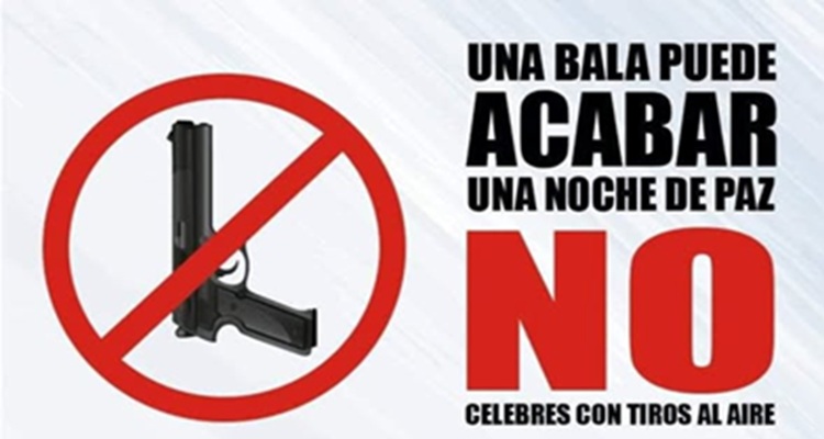 El exhorto es a evitar el uso de armas de fuego y a no disparar al aire, ya que una bala disparada puede alcanzar una altura de 800 metros y descender a una velocidad estimada de 117 metros por segundo, lo que puede provocar lesiones e incluso arrebatar la vida.