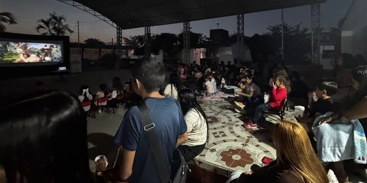 COAHUAYANA, Mich., 11 de marzo de 2026.- Este martes por la noche en instalaciones del Preescolar Fray Bartolomé de las Casas de la localidad del Ranchito, se vivió con un éxito total la función de Cine en tu barrio con causa en la que sumaron esfuerzos el Colectivo Jóvenes Chambeando y el Comité de Padres de Familia del plantel.