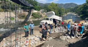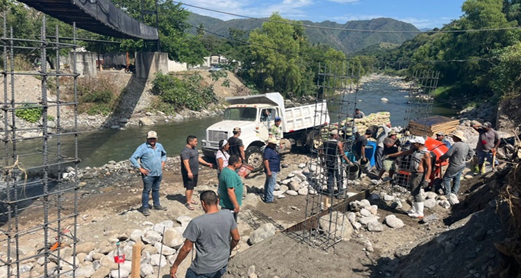 AQUILA, Mich., 13 de noviembre de 2025.- Una magna obra que satisface la necesidad más sentida de la capital municipal aquilense, es la que lleva a cabo la Comunidad Indígena San Miguel Aquila (CI Aquila) con la reconstrucción de la parte dañada del muro de contención que protege de inundaciones del río a la también cabecera comunal.