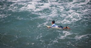 En la competencia nacional de Surfing, el tiburoncín de La Ticla Oscar Nemecio causó sensación durante su participación por sus habilidades para surfear en las olas con valor y habilidad creando arte en la mar con sus giros y maniobras ofreciendo un gran espectáculo que muy aplaudido.