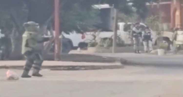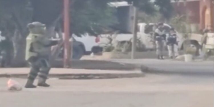 BUENAVISTA, Mich., 26 de octubre de 2025.- Este domingo, soldados del Ejército Mexicano y policías de la Guardia Civil especializados en el manejo de explosivos, desactivaron varios artefactos que fueron colocados por presuntos criminales en el puente de La Ruana, en Buenavista.