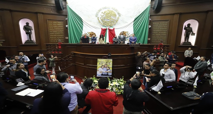 MORELIA, Mich., 4 de febrero del 2026.- Previo al inicio de la sesión programada para este miércoles, diputadas y diputados integrantes de la 76 Legislatura, rindieron homenaje póstumo y guardaron un minuto de silencio por el sensible fallecimiento de Víctor Manuel Mujica Vega y Anayeli Hernández León, intérpretes de Lengua de Señas Mexicana y compañeros trabajadores de este Poder Legislativo, así como de su hija Megan Mujica Hernandez.