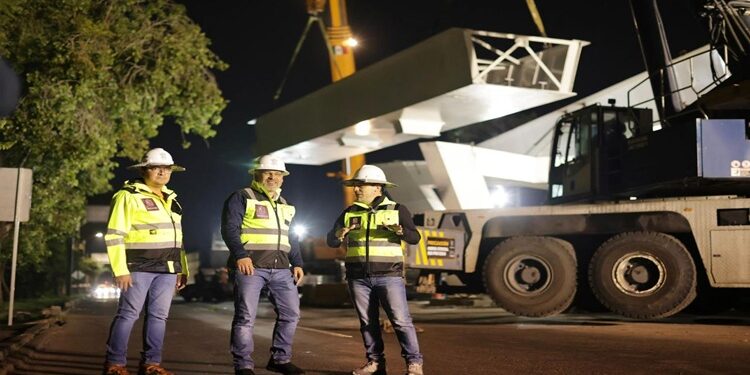Manifestó que la trabe colocada durante las primeras horas de este lunes, es la cuarta de 20 secciones con que contará el paso, mismas que soportarán la estructura superior.