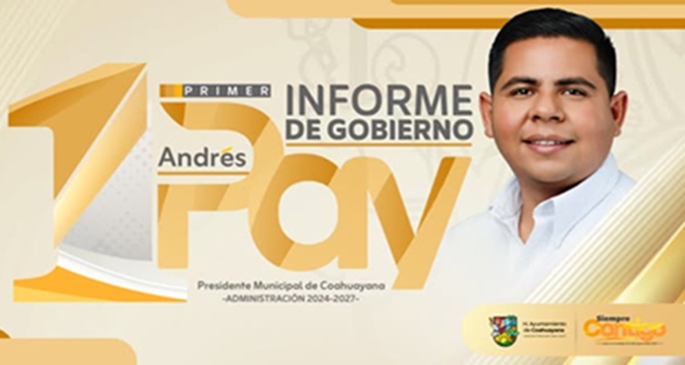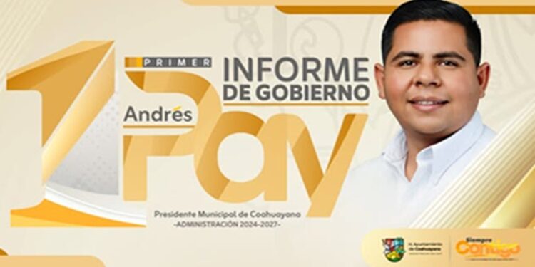 COAHUAYANA, Mich., 8 de agosto de 2025.- El presidente municipal Andrés Rafael Aguilar Mendoza, Pay, está invitando a la población en general a la presentación del 1er Informe de Gobierno del Ayuntamiento de Coahuayana 2024-2027, el que se rendirá en la sesión pública y solemne de cabildo programada para celebrarse este sábado 9 de agosto a las 18 horas (seis de la tarde) en la explanada municipal.