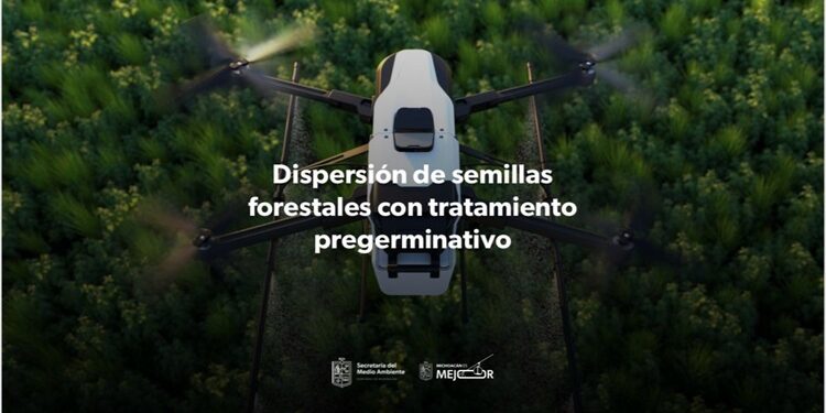 MORELIA, Mich., 21 de agosto de 2025.- Como parte de la campaña de reforestación 2025 Sembremos el futuro, arrancó la dispersión de 200 miles de semillas de árbol pregerminadas en zonas afectadas por incendios forestales, mediante el uso de drones, informó el gobernador Alfredo Ramírez Bedolla.