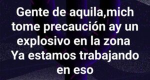 AQUILA, Mich., 3 de enero de 2026.- Grupos de civiles armados intentaron incursionar a la cabecera municipal de Aquila en el inicio del año nuevo 2026 con actos terroristas, al disparar indiscriminadamente desde los cerros hacia viviendas de familias aquilenses de la localidad de Corralitos y también se valieron de bombas lanzadas con drones hacia la Colonia INI, algunas de las cuales no explotaron y quedaron representando un grave riesgo para la población.