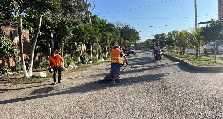 Realizan trabajos de bacheo en distintas vialidades de Coahuayana