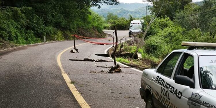 La dependencia informo que al momento se registra un socavón que genera la obstrucción de uno de los carriles sobre la carretera estatal Coalcomán – Las Parotas, a la altura del kilómetro 27, en el tramo comprendido entre el Puerto de las Cruces y Las Parotas.