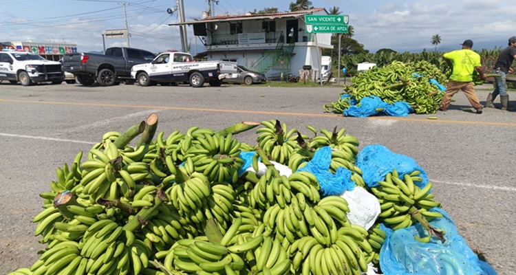 La movilización pacífica de los productores de plátano es para visibilizar los bajos precios que se están pagando por su fruta y para exigir apoyos del gobierno con precios mínimos de garantía y políticas públicas a favor de los agricultores.