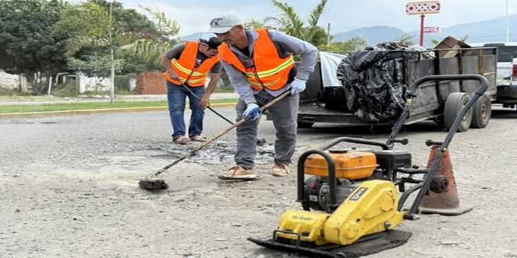COAHUAYANA, Mich., 03 de noviembre 2025. – En la cabecera municipal se continúan labores de bacheo y rehabilitación de rúas urbanas principales, esta vez concentrándose sobre la avenida Constituyente Sur, en los puntos dónde son evidentes los daños ocasionados por las frecuentes lluvias.