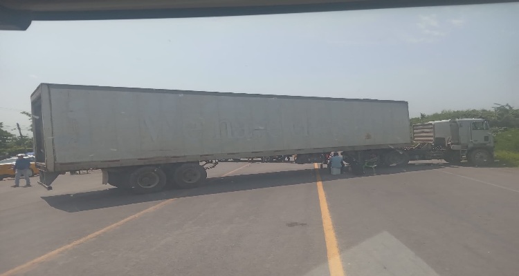 El cierre de la carretera es total y la mujer que aparentemente encabeza el bloqueo, asegura que será indefinido hasta que la Marina acuda a devolver el dinero presuntamente robado.