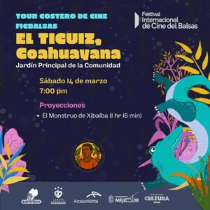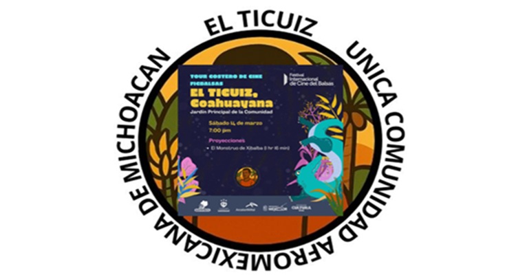 COAHUAYANA, Mich., 11 de marzo de 2026.- Una invitación a todos los coahuayanenses es la que hace el Pueblo Afromexicano El Ticuiz a participar y disfrutar de la función especial del Festival Internacional de Cine del Balsas (FIC Balsas) que como parte del Tour Costero se presentará en el jardín principal de la comunidad el próximo sábado 14 a las 19 horas (7 de la noche).